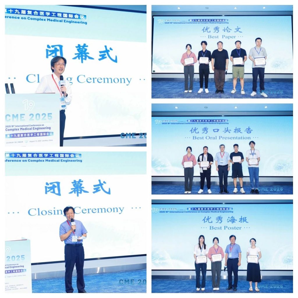 At the closing ceremony, Professor Toshiya Murai, General Chair of the Conference, President of the International Society of Composite Medical Engineering (ICME) and Kyoto University, and Professor Jinglong Wu, General Chair of the Conference and Okayama University, delivered closing speeches. Notably, the conference organizing committee selected 4 outstanding papers, 4 excellent young scholar presentations, and 3 excellent posters, and presented the awards to the winners. It is hoped that by recognizing these outstanding researchers and their scientific achievements, more scholars will be encouraged to continuously explore and scale new heights in the field of medical engineering.