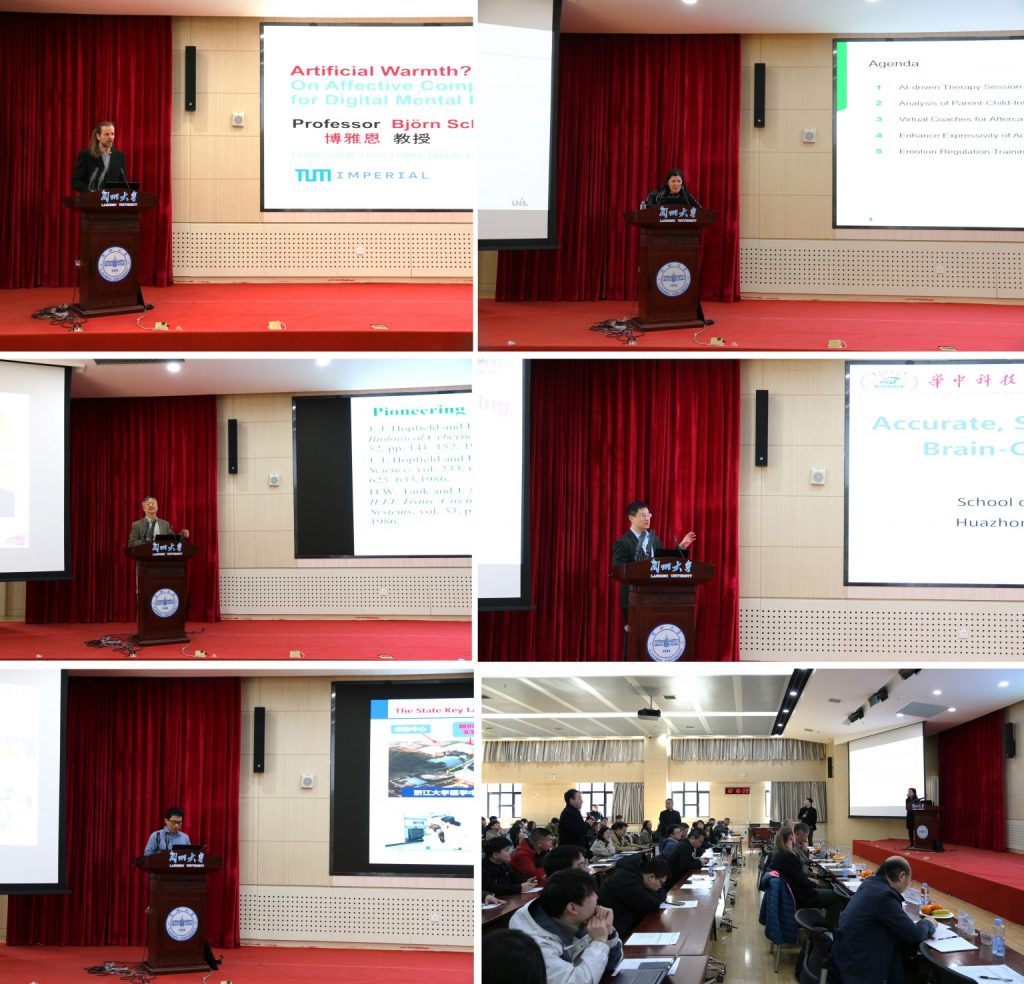 From March 23 to 24, 2025, the 16th Interdisciplinary Forum of Lanzhou University—Academic Forum on “Symposium on Affective Computing and Digital Mental Health & IEEE Editors’ Forum” was held at Chengguan Campus. The forum was hosted by Lanzhou University and organized by the School of Information Science and Engineering, School of Basic Medical Sciences, and Research Institute of Science and Technology Development of Lanzhou University. Wenbo Chen, Secretary of the Party Committee and Executive Vice Dean of the School of Information Science and Engineering of Lanzhou University, attended the opening ceremony and delivered a speech. Present at the opening ceremony were leaders, experts and scholars from inside and outside the university, including Xiaoping Duan, Deputy Secretary of the Party Committee of the School of Information Science and Engineering of Lanzhou University; Bin Hu from the School of Information Science and Engineering of Lanzhou University; Professor Yanfeng Song from the School of Basic Medical Sciences of Lanzhou University; Professor Bjoern W. Schuller from Imperial College London, UK; Professor Elisabeth Andre from the University of Augsburg, Germany; Professor Jun Wang from City University of Hong Kong; Professor Huajin Tang from Zhejiang University; Professor Dongrui Wu from Huazhong University of Science and Technology; and Professor Kun Qian from Beijing Institute of Technology. The forum was chaired by Professor Bin Hu.