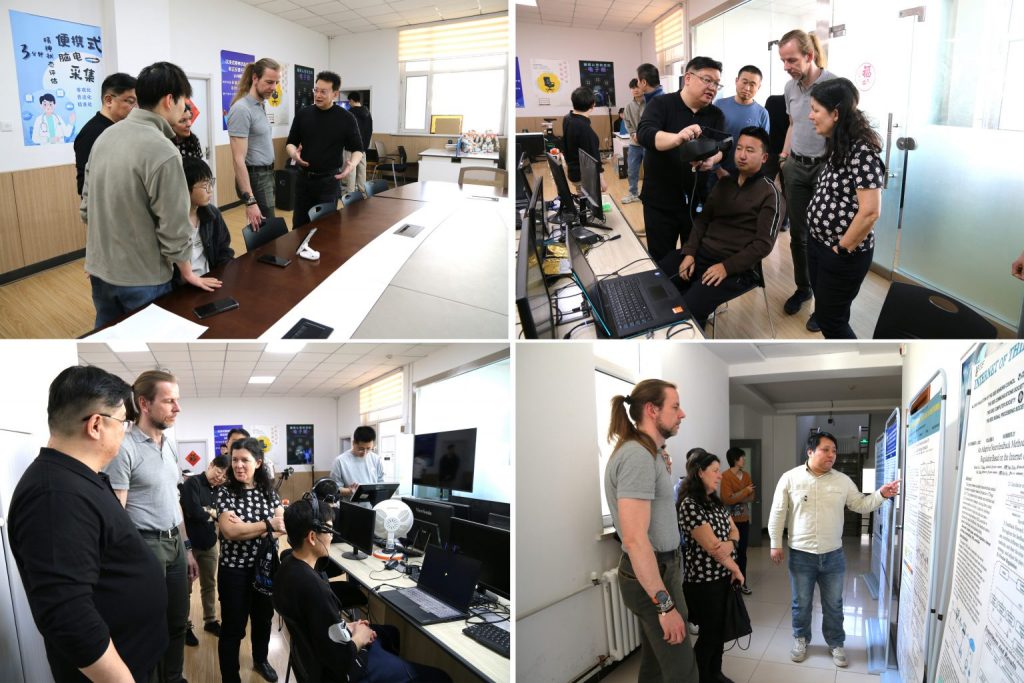 During the forum, experts and scholars paid an on-site visit to the Gansu Key Laboratory of Wearable Devices. The laboratory team demonstrated a number of innovative achievements on site, including a 3-channel EEG depression assessment system, an intelligent wearable eye tracker, and a VR bicycle feedback training system. Experts and scholars conducted in-depth exchanges with the faculty and students of the laboratory regarding technical details and application scenarios. In addition, faculty and students of Lanzhou University engaged in relevant research fields presented their latest individual and group research findings in the form of academic posters, and conducted in-depth discussions with the experts and scholars.