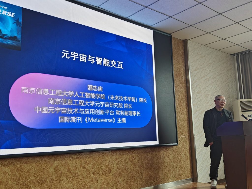 On March 27, 2024, at the invitation of Professor Bin Hu, Professor Zhigeng Pan—Dean of the School of Artificial Intelligence (School of Future Technologies) and the Metaverse Research Institute of Nanjing University of Information Science & Technology—visited the Gansu Key Laboratory of Wearable Devices and the UAIS Laboratory for academic exchange. All faculty and students of the laboratories extended a warm welcome to Professor Pan. During the visit, Professor Pan toured the Gansu Key Laboratory of Wearable Devices. Faculty and students of the laboratory demonstrated a series of system achievements including the 3-channel EEG depression assessment system, wearable eye tracker, and VR bicycle feedback training system, and introduced the ongoing research projects. After the exchange, Professor Pan delivered an academic report titled Metaverse and Intelligent Interaction to all faculty and students of the School of Information Science and Engineering.